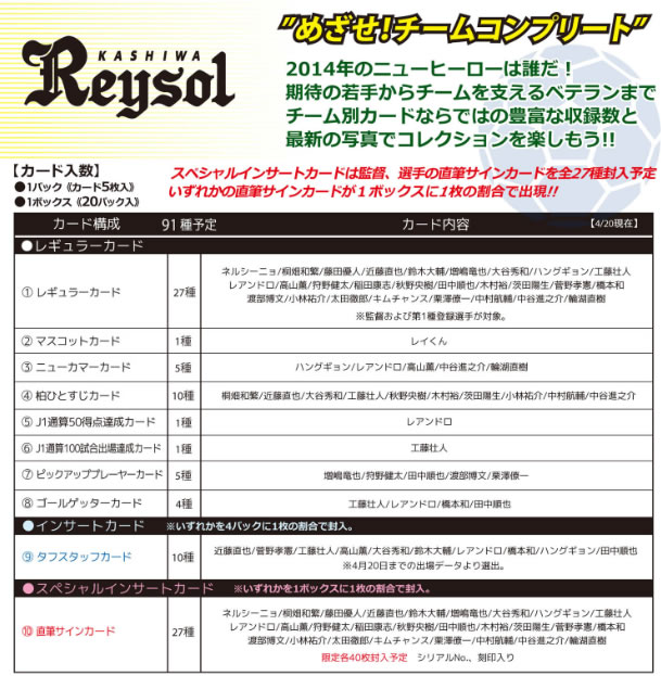 2010 Jリーグ オフィシャルトレーディングカード 柏レイソル