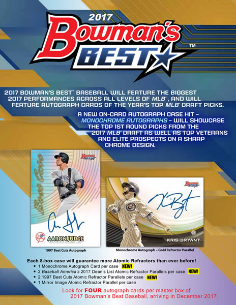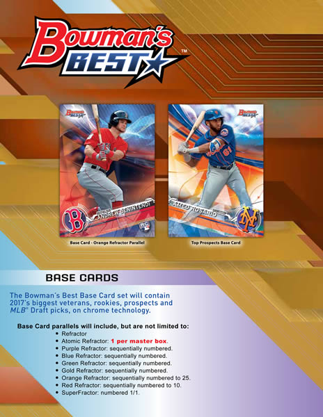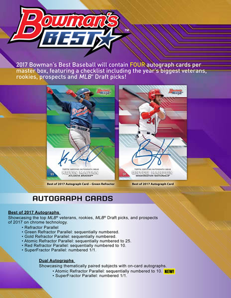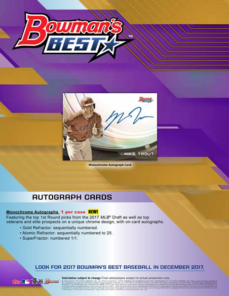 *ベストオブ2017は、現役スターやルーキー、プロスペクト、2017ドラフトピックの直筆サイン! リフラクター、グリーン(限定)、ゴールド(限定)、アトミック(25枚)、レッド(10枚)、スーパーフラクター(1OF1)