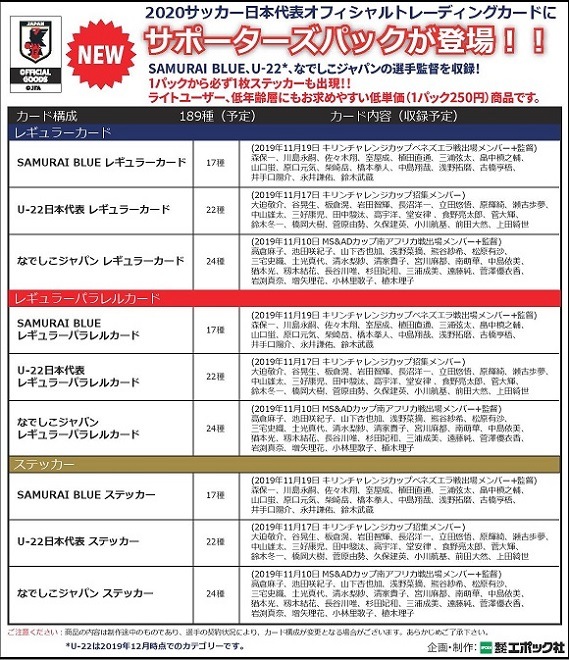 2020サッカー日本代表オフィシャルトレーディングカードにサポーターズパックが新登場!!!