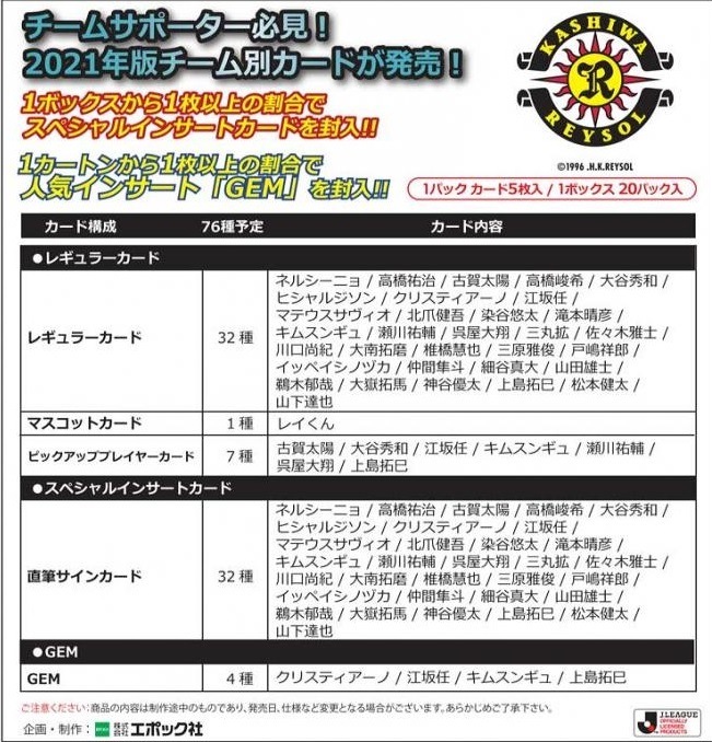 EPOCH 2022 Jリーグチームエディションメモラビリア 柏レイソル BOX(送料無料) 2022年8月14日発売予定