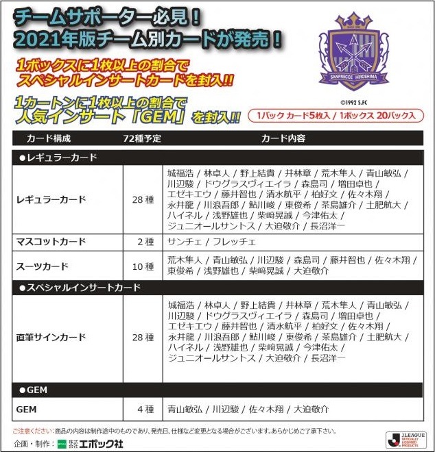EPOCH 2024 サンフレッチェ広島 Jリーグチームエディション・メモラビリア BOX(送料無料) 2024年8月25日発売