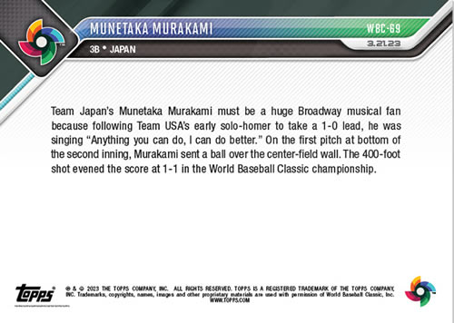 2023 TOPPS NOW WBC #66 村上宗隆 WALK-OFF 2B CAPS WBC MATCH UP