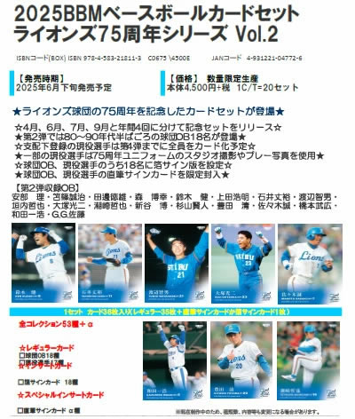 2025 BBM ベースボールカードセット ライオンズ75周年シリーズ Vol.1 (送料無料) 2025年4月22日発売
