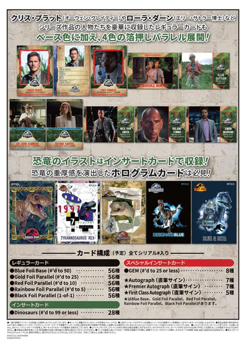 インサートカード ●28種 Dinosaurs (#’d to 99 or less) スペシャルインサートカード ●8種 GEM (#’d to 25 or less) ★7種 Autograph(直筆サイン) ★7種 Premier Autograph(直筆サイン) ★5種 First Class Autograph(直筆サイン)
