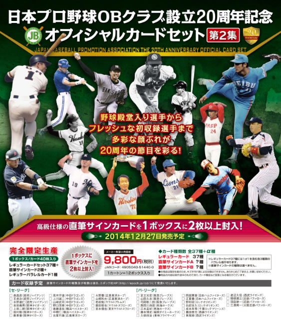 日本プロ野球OBクラブ設立20周年記念 オフィシャルカードセット第2集