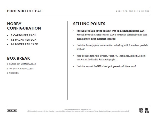 パニーニ社NFL公式アメリカンフットボールカードに新ブランド「フェニックス」が登場!