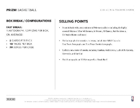NBA 2019/2020 PANINI PRIZM BASKETBALL FAST BREAK BOX