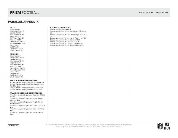 パニーニ社NFL公式アメフトカードの超人気ブランド「プリズム」の2020年版が登場!