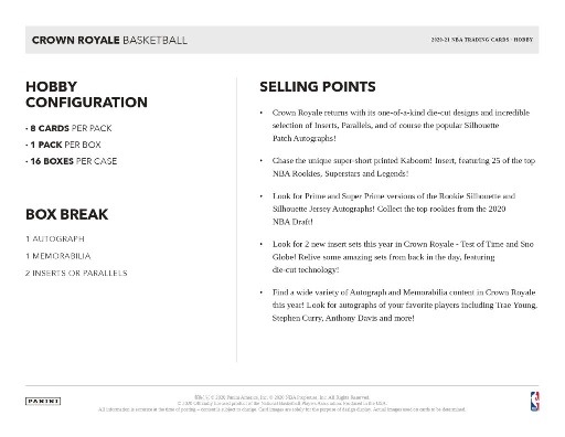 NBA 2020/2021 PANINI CROWN ROYALE BASKETBALL