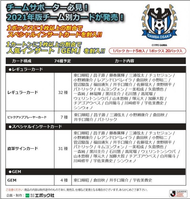 EPOCH 2022 Jリーグチームエディションメモラビリア ガンバ大阪 BOX(送料無料) 2022年7月30日発売
