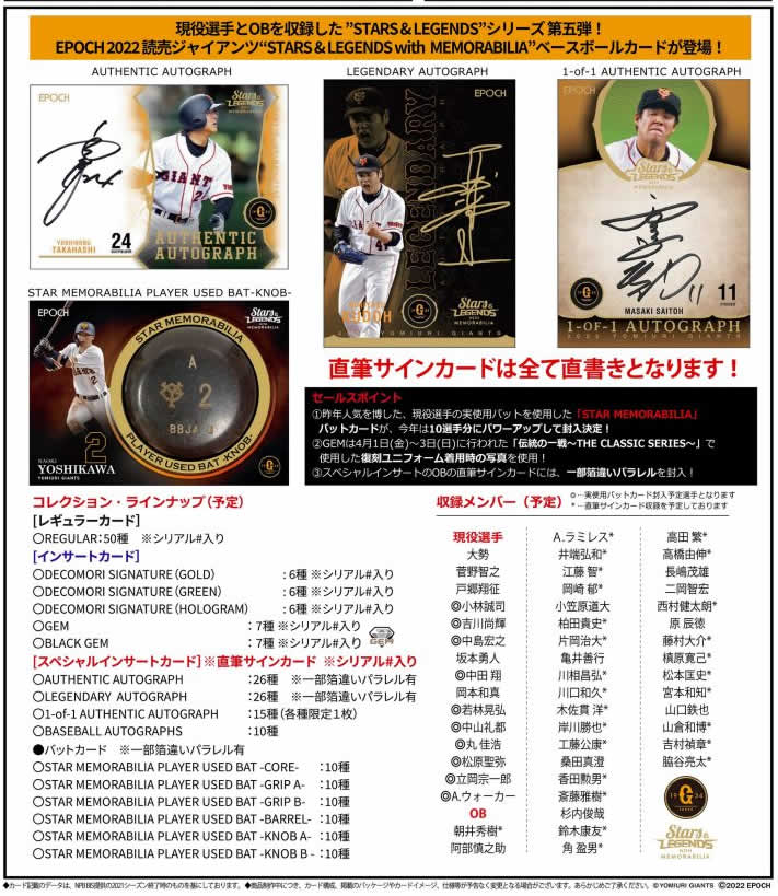 EPOCH 2024 読売ジャイアンツ STARS&LEGENDS with MEMORABILIA BOX(送料無料) 2024年11月30日発売