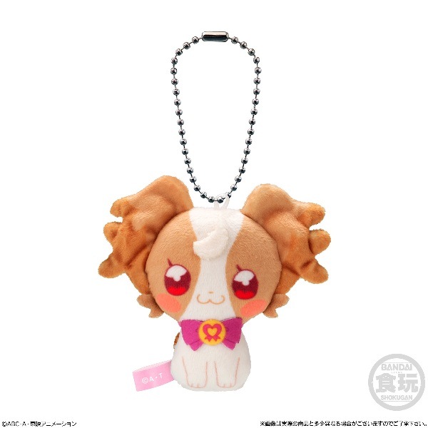 『わんだふるぷりきゅあ!』の布製マスコットが登場です。いつでも一緒にいたくなる、気持ち良い肌触りのチェーン付きマスコットです。ガム1個付き。