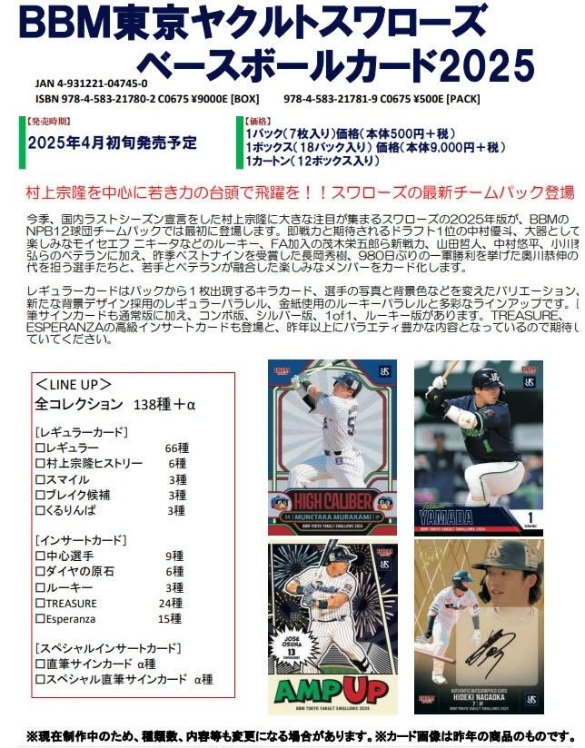 BBM 東京ヤクルトスワローズ ベースボールカード 2025 BOX(送料無料) 2025年4月2日発売