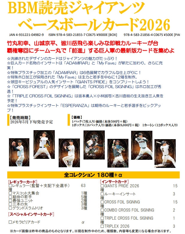 (予約)BBM 読売ジャイアンツ ベースボールカード 2026 BOX■カートン(12箱入)■(送料無料) 2026年5月下旬発売