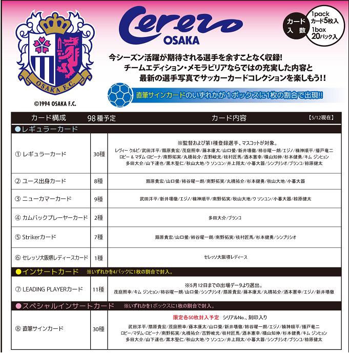 2017 Jリーグ カード チームエディション・メモラビリア セレッソ大阪 BOX